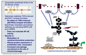 Unlike other attempts to modulate the innate immune response, IDRs, like dusquetide, are unique because they target the intracellular control pathways including the protein p62 of the innate immune system – changing the character of the innate immune response. They decrease or control the inflammatory component and increase the tissue healing or anti-infective component. The effect on the innate immune response is immediate (within 30 minutes) and long-lasting (up to 5 days).